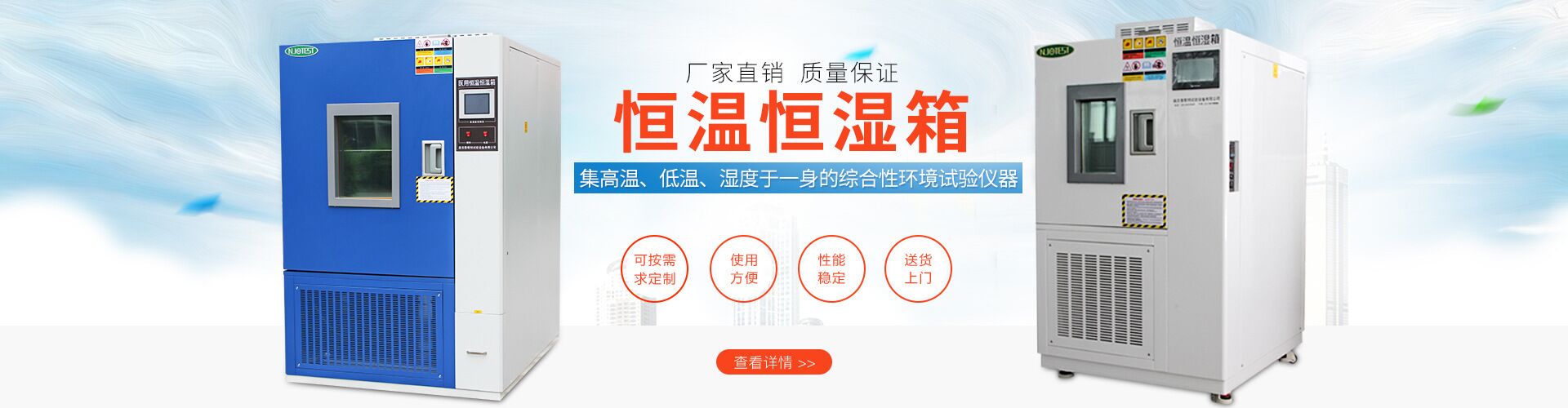 南京泰斯特試驗(yàn)設(shè)備有限公司 主營:高低溫試驗(yàn)箱,恒溫恒濕箱,高低溫沖擊試驗(yàn)箱,氙燈老化試驗(yàn)箱,鹽霧腐蝕試驗(yàn)箱,臭氧老化試驗(yàn)箱,高低溫交變濕熱試驗(yàn)箱,步入式溫濕度試驗(yàn)室